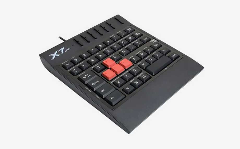 В отличии от обычной клавиатуры, игровой блок A4Tech располагает все необходимые кнопки под одной ладонью, поэтому при игре можно не отрывать вторую руку от мышки. В нижней части блока предусмотрена несъемная подставка под кисть. Подключается девайс к компьютеру или ноутбуку через гладкий провод с USB, драйвера устанавливаются автоматически.