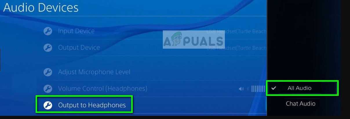 - Чтобы убедиться, что на гарнитуру выводится не только чат, но и объем игры, нам нужно изменить параметр Выход на наушники. Убедитесь, что он выбран как Все аудио.
