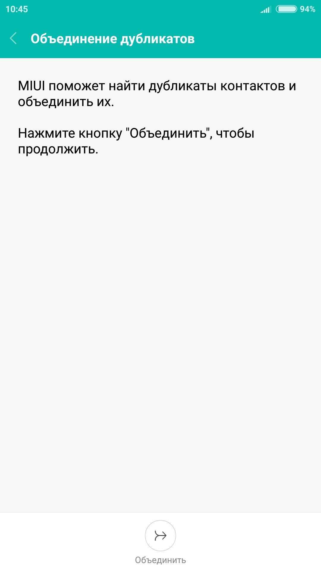 Шаг 5. ОС предложит найти дубликаты контактов и объединить их. Нажмите кнопку «Объединить», чтобы запустить эту операцию.