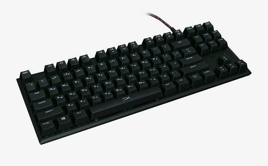 Плюсы: лучшая механическая клавиатура HyperX для профессиональных геймеров. Гаджет выделяется отсутствием Num клавиш, что сразу делает его очень компактным. Удобство доставляет и отсоединяющийся кабель, выполненный в тканевой оплетке. Это делает клавиатуру максимально удобной, чтобы брать ее на соревнования и тренировки.