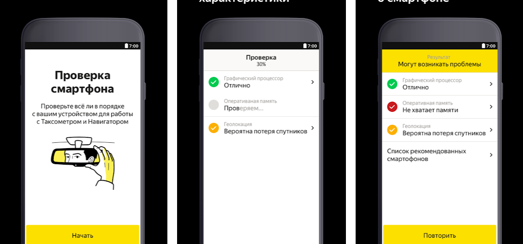 Сотрудничество с онлайн-сервисом «Яндекс.Такси» ведется через специальное устройство, без которого водитель не сможет войти в систему. Телефон должен корректно отражать местоположение таксиста. За эту функцию отвечает навигатор, качество работы которого напрямую зависит от модели смартфона или планшета. Устройство должно соответствовать ряду параметров: