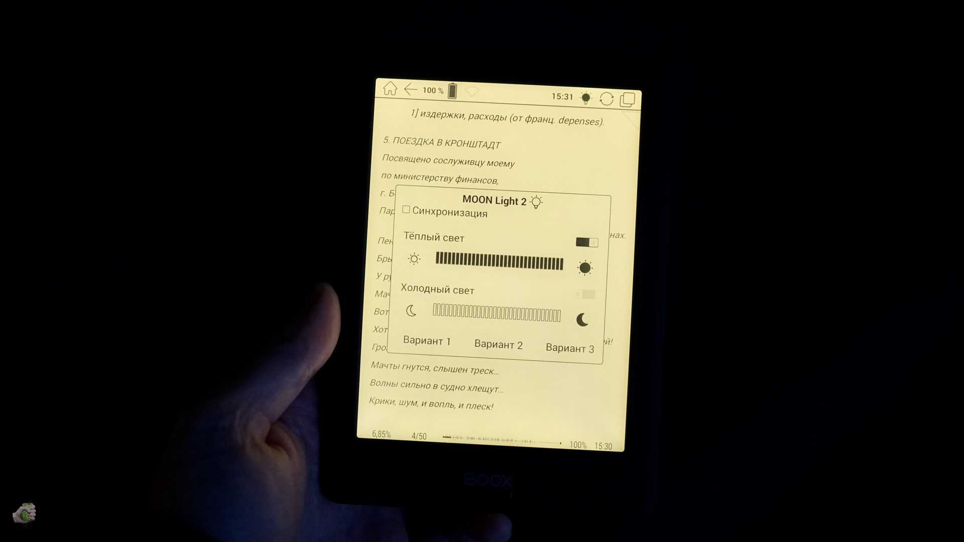 Многие спрашивают, есть ли толк от этой подсветки? Да, конечно есть. Ночью не так устают глаза, как от экрана айфона, можно увеличить шрифт для большего удобства. Если летом любите почитать на лавочке у дачи — тоже отлично. Можно придумать ещё десяток сценариев — даже под зонтом на пляже с чуть увеличенной подсветкой читать круче, чем без подсветки.