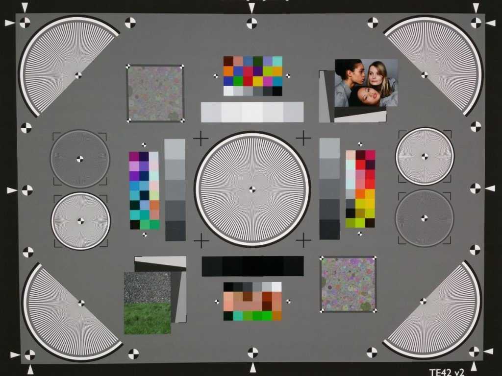 Основной упор в нашем тесте камер мобильных телефонов мы делаем на тыловую камеру. Пять раз мы фотографируем специальную измерительную таблицу и оцениваем получившиеся результаты с помощью специального программного обеспечения. Оно рассчитывает такие показатели, как искажения, разрешение, точность цветопередачи и виньетирование.