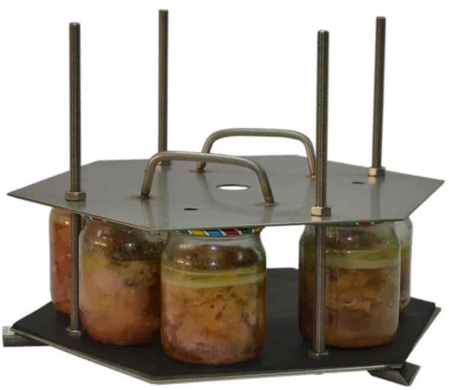 Если загрузить закатанную банку в автоклав и не закрепить крышку банки, то во время приготовления её обязательно сорвет от избыточного давления. Для устранения этой проблемы используется один из способов:
