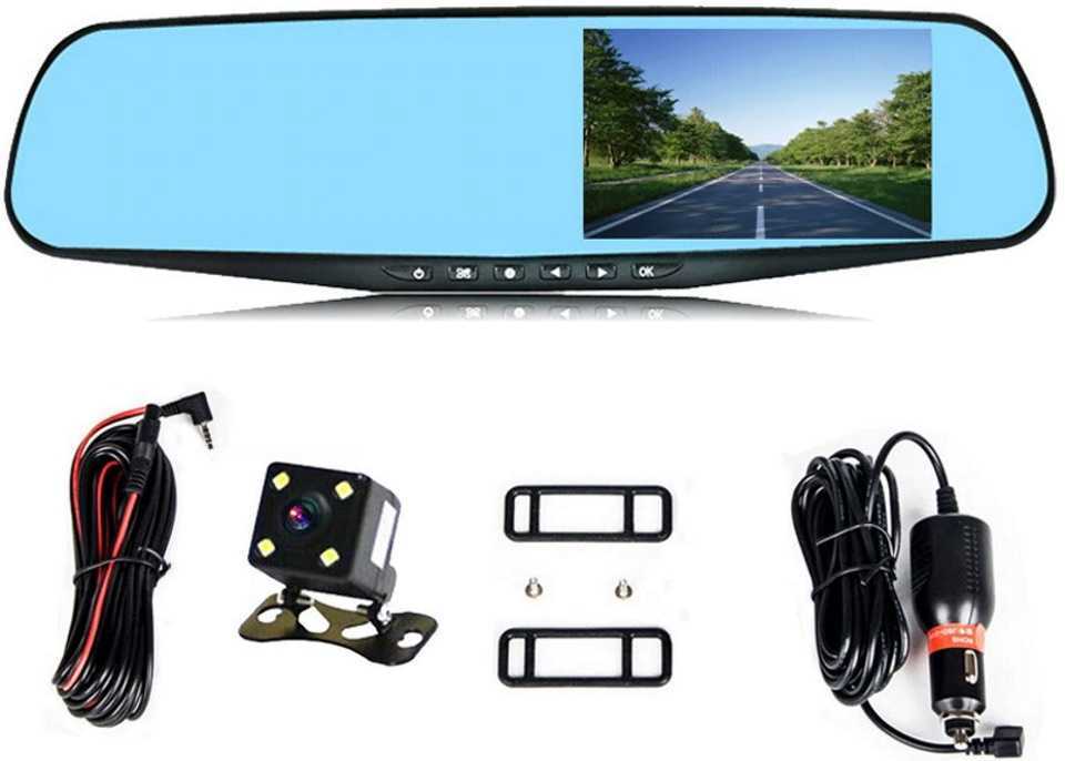 Новая модель двухканального видеорегистратора. Устройство выполнено в виде зеркала заднего вида. Установка мощного процессора позволяет детализировать фронтальную съемку. Благодаря широкому углу обзора камера регистратора захватывает 5 полос движения. Задняя камера снимает одновременно с фронтальной, а также помогает при движении задним ходом.