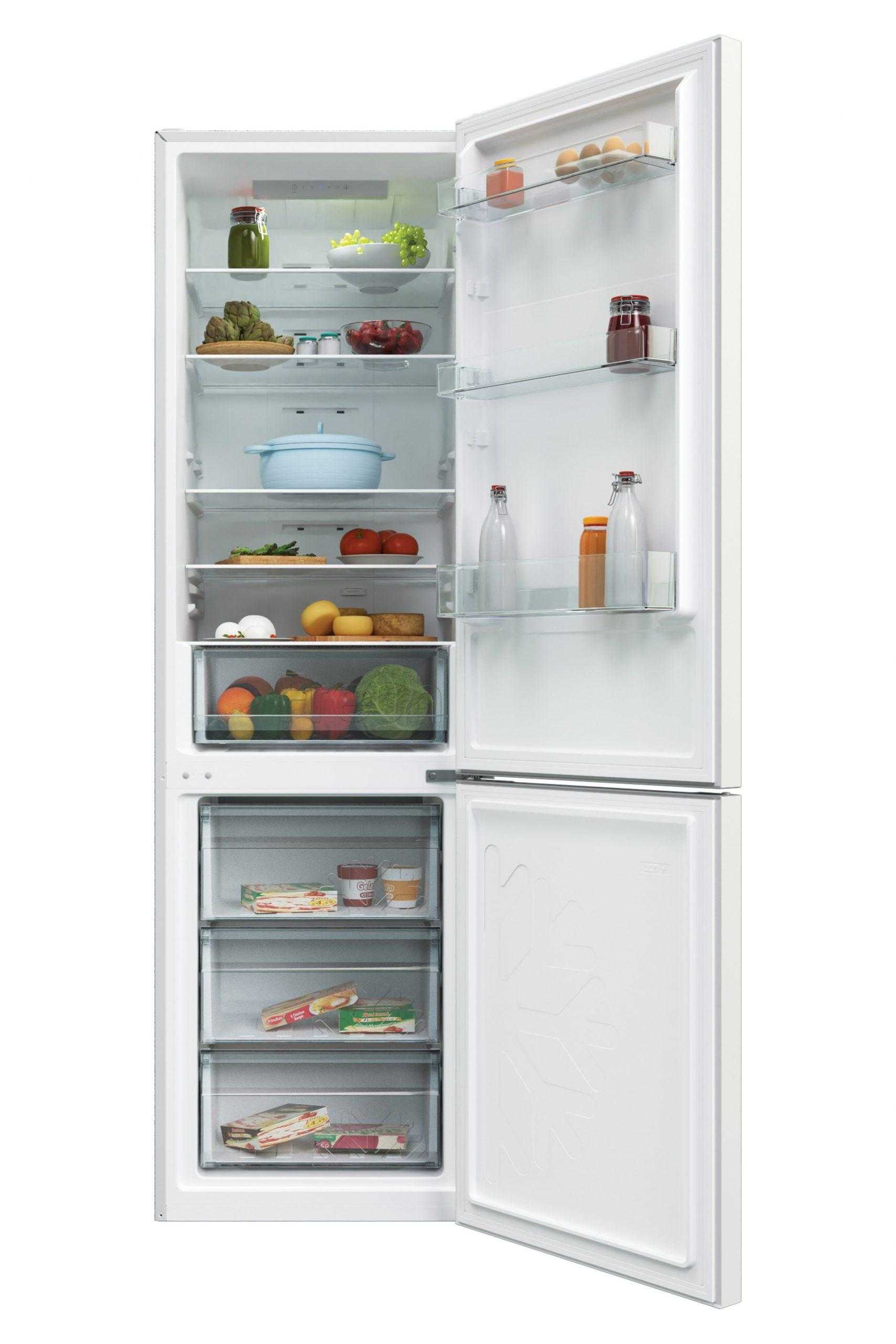 Внешний дизайн холодильника марки Candy выполнен в классическом варианте и лишен декоративных излишеств. Единственное украшение – логотип бренда в верхней части устройства. Бытовой прибор вместительный – общий объем 370 л. Отличается бесшумной работой. Среди других особенностей: возможность перевешивания двери, равномерная подсветка внутри и понятное электронное управление. Единственное, что может не понравиться – не очень высокий класс энергоэффективности и глубина (немного больше 60 см), что может стать проблемой при размещении.