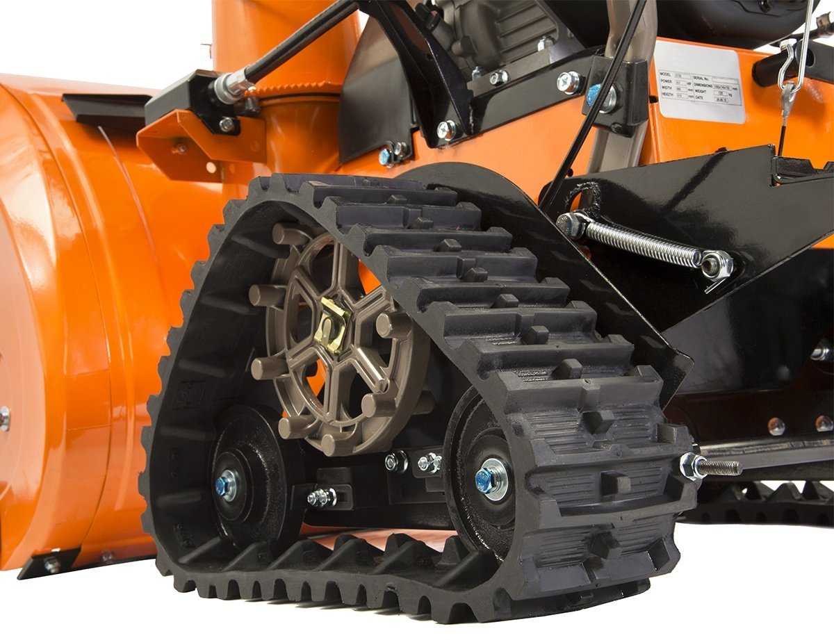 - Ходовая часть. Все снегоуборочные машины можно разделить на две группы по типу ходовой части. Колесные модели в свою очередь бывают самоходные и несамоходные. Несамоходные модели отлично подойдут домовладельцам, которые регулярно убирают свежевыпавший снег в своем дворе. Чем тяжелее и производительнее агрегат, тем сложнее его будет толкать обычному человеку. Поэтому предпочтение следует отдать самоходной машине. А если пользователю нужно очищать от снега наклонные участки или удалять большие сугробы, то лучше всего выбрать технику на гусеничном ходу.