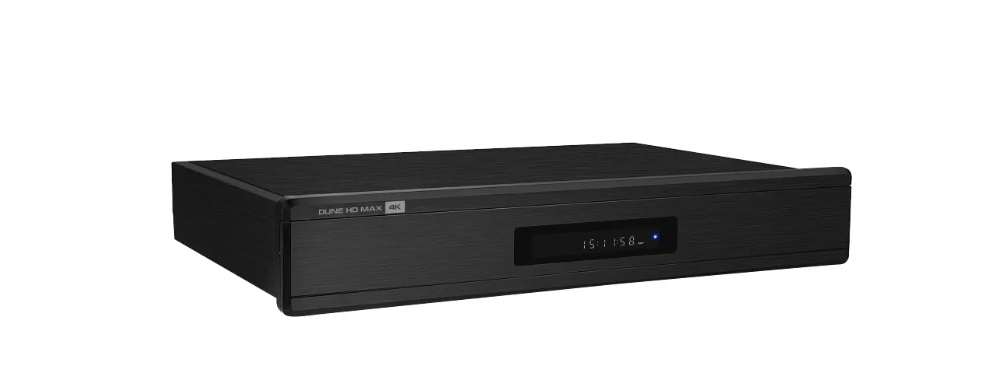 Медиаплеер Dune HD Max 4K – премиальная модель в линейке производителя. Благодаря поддержке разрешения Ultra HD 4K, технологии HDR, 10-битному кодированию цветовой палитры и кодированию согласно стандарту BT.2020 данная модель обеспечивает увлекательный досуг. С помощью устройства можно воспроизводить мультимедийный контент с интернета, мобильных устройств или внешних цифровых носителей. Медиаплеер Dune HD Max 4K работает под управлением ОС Android с фирменным пользовательским интерфейсом Dune HD. Передняя панель корпуса примечательна стильной алюминиевой накладкой и встроенным информативным дисплеем. Медиаплеер Dune HD Max 4K оборудован двумя отсеками для установки жестких дисков SATA 3.5 дюйма емкостью не более 10 ТБ. Беспроводные коммуникации реализованы технологиями Bluetooth и Wi-Fi (2-диапазонный). На корпусе расположены порты USB Type-C, USB 3.0 и USB 2.0 для подключения периферийного оборудования, 2 видеовыхода HDMI, аудиовыходы S/PDIF. В комплекте поставляются два пульта ДУ: ИК-пульт с поддержкой функции обучения и пульт с функцией AirMouse, подключаемый посредством Bluetooth.