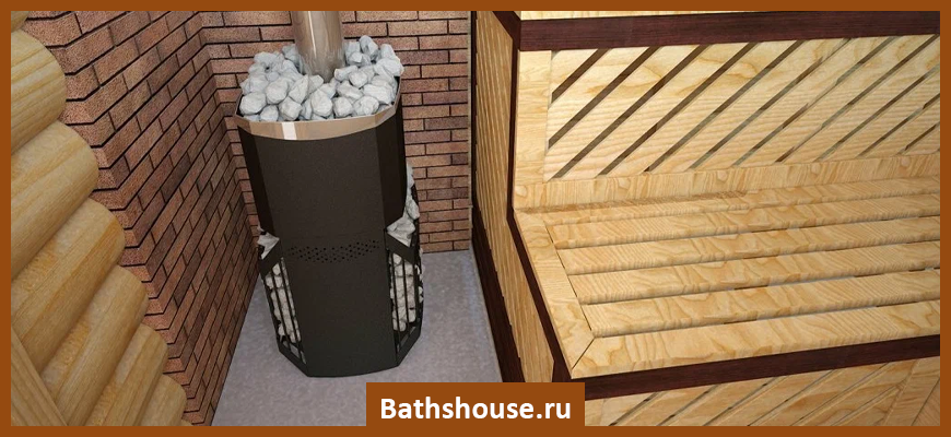 Камни укладываются в отсек в форме ванной. Это позволяет набрать достаточно много тепловой энергии. Однако получить действительно живой пар сложно, поскольку верхний слой булыжников нагревается не выше 200 градусов. В результате для получения настоящей атмосферы русской бани придется долго выводить печь на оптимальный режим.