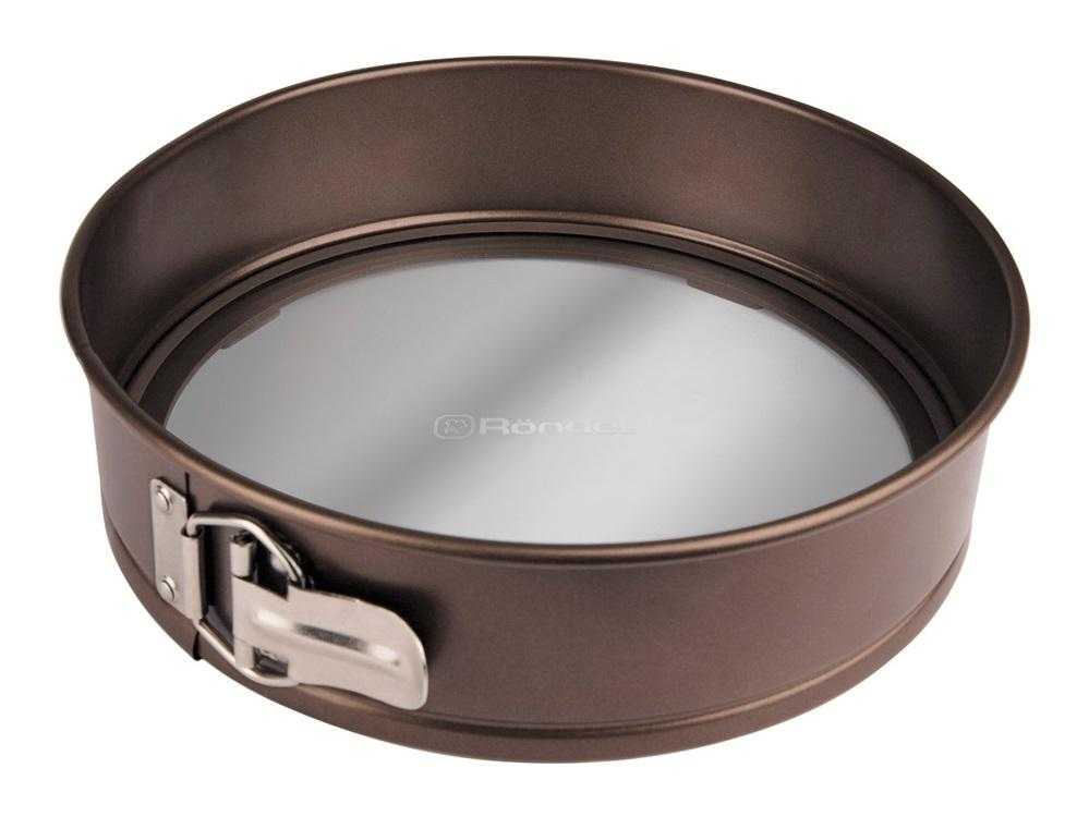Часто встречается круглая разъемная форма для выпечки. Такие изделия выпускаются по отдельности, или предлагается целый набор. Стандартный комплект – диаметром 26 см, 24 см и 18 см, круглая форма. Они удобны именно для домашней кулинарии. Высота боковины варьируется от 5 до 10 см. Подходит такой аксессуар для чизкейков, коржей, бисквитов, желе, тортов. Даже без боковины такие формы находят применение: на них выпекают тонкие коржи, пиццу, знаменитый торт наполеон.
