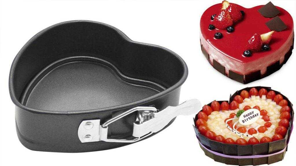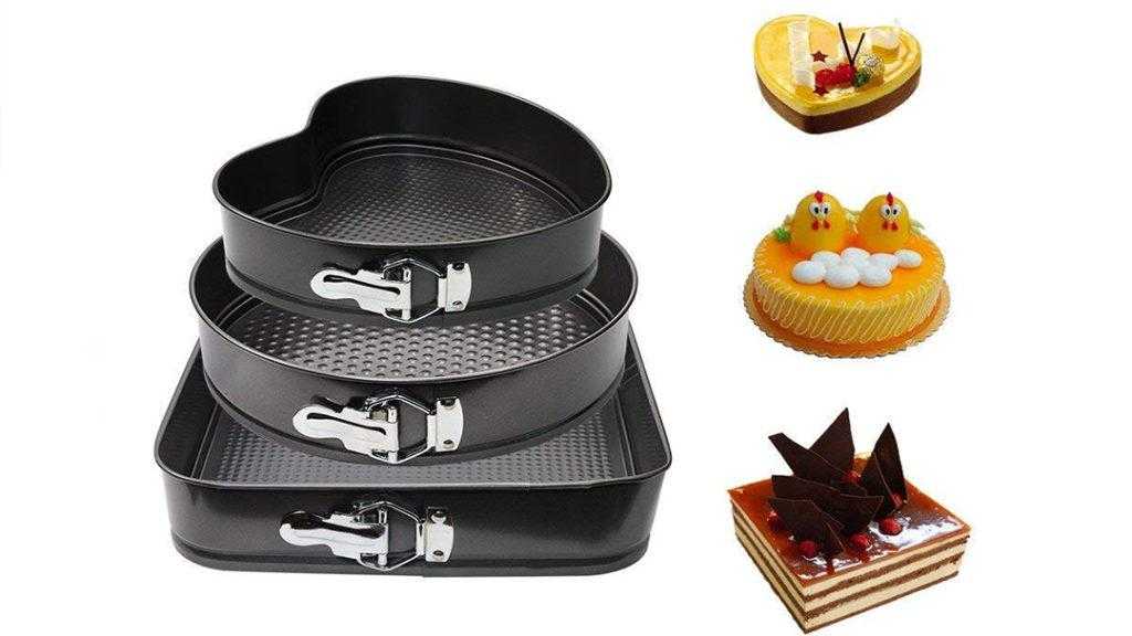 В продаже есть наборы форм с разными диаметрами – удобно готовить многоярусный торт. Также есть наборы с посудой разной конфигурации в составе, например, круглая, квадратная и в виде сердца. «Сердечные» подойдут для особого случая.