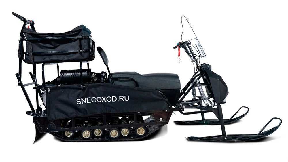 - На некоторых мини снегоходах трансформерах можно снять заднюю спинку, а также для ног пассажира есть дополнительные откидные подножки. Все это создает определенное удобство во время передвижения.