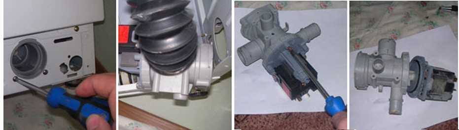 Когда предыдущие варианты не срабатывают, обращаемся к самому сложному и эффективному способу: вычистить фильтр с другой стороны – через отверстие под помпу. Для этого придется добраться до самой улитки и снять дренажный насос. Потребуется знание устройства автомата, поэтому при неуверенности в своих силах лучше не экспериментировать и обратиться к профессионалам сервисной службы. Если предстоящие манипуляции не пугают – ориентируйтесь по приведенным далее инструкциям.