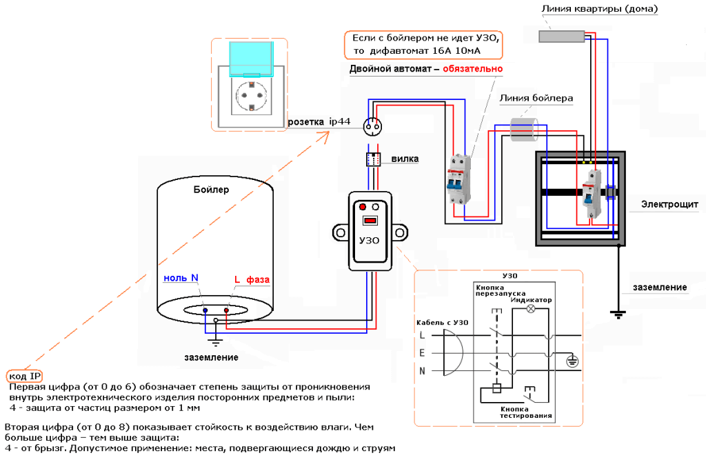 Для большей безопасности важно использовать при подключении бойлера УЗО
