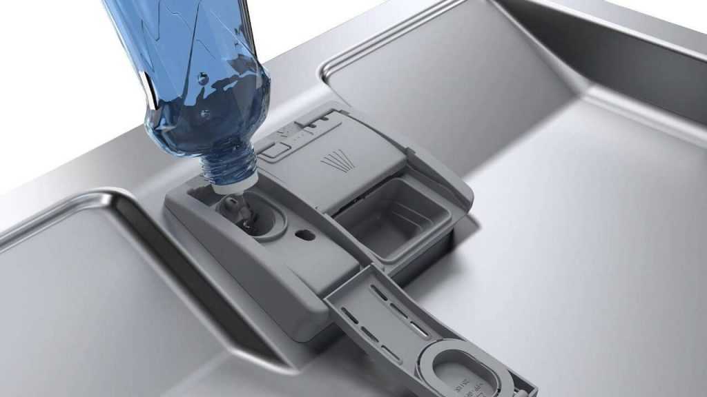 Обычно ополаскиватель закладывают в посудомойку одновременно с моющим. Лучше всего выбирать фирменные средства, подходящие для определенной моющей техники.