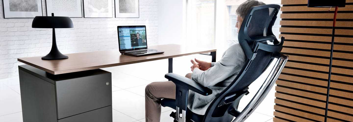Работающим удалённо людям желательно сидеть в удобном кресле с подголовником и подставкой для ног. Человек не должен отвлекаться на ноющую спину и отёкшие нижние конечности.