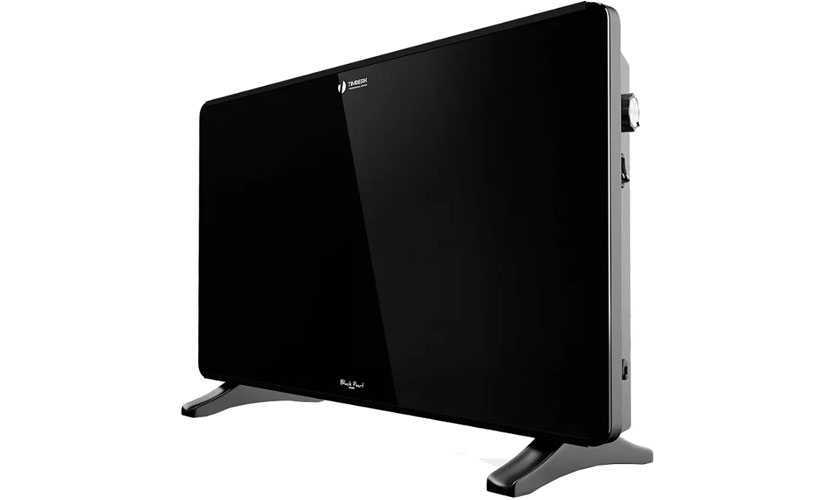 Обогреватель конвекторного типа выполнен в черном корпусе. Модель оснащена электронным управлением, пультом ДУ, дисплеем, световым индикатором. Уровень мощности у прибора – 1500 Вт. Прибор быстро обогреет комнату в 15-18 м2. В устройстве предусмотрена защита влаги, от мороза и перегрева. Стоимость находится в пределах 4600-5000 р.