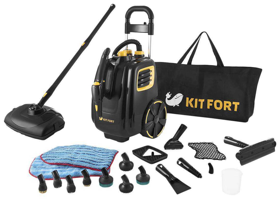 Устройство от Китфорт работает с мощностью 1500 Вт и позволяет своим владельцам свободно добавлять специальные моющие средства для повышения качества уборки. Вместительность бака для жидкости достигает 0,45 л.