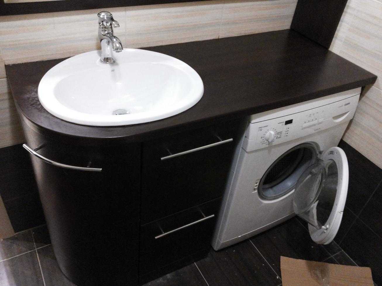 Обзор раковин над стиральной машиной: нюансы специальной мебели и столешниц