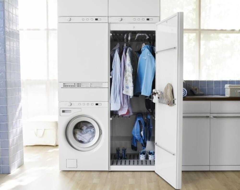 Сушильный агрегат решает сразу несколько проблем — белье не сохнет по трое суток в дождливую погоду в помещении, а потом его становится легче отгладить. Благодаря таким агрегатам вещи будут мягкие, без заломов и складок, а кое-что из одежды можно будет сразу повесить на плечики.
