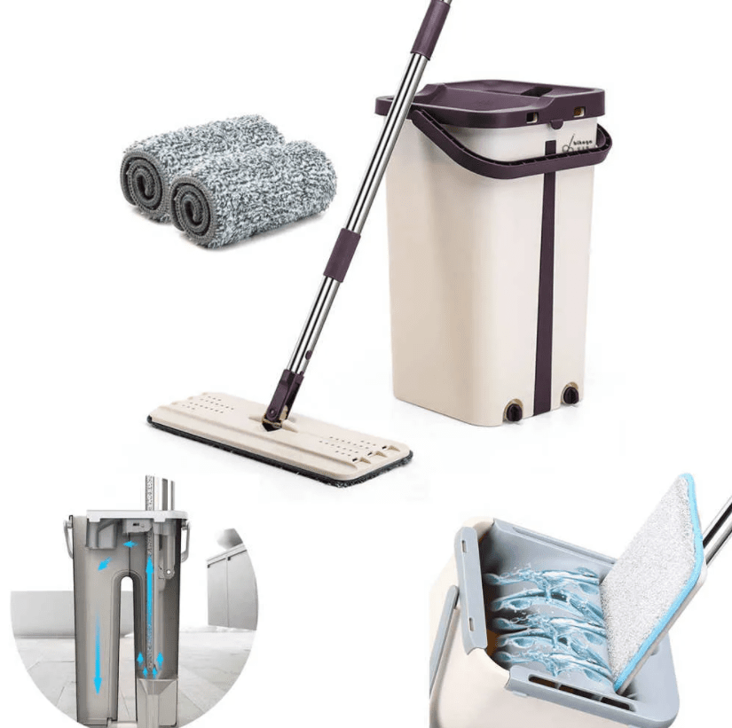 Комплект для уборки Scratch Cleaning Mop состоит из швабры с раздвижной ручкой и насадкой-флаундером и ведра с двумя отделениями. Благодаря микрофибре, поверхность очищается от грязи и пыли. После окончания уборки разводы не остаются.