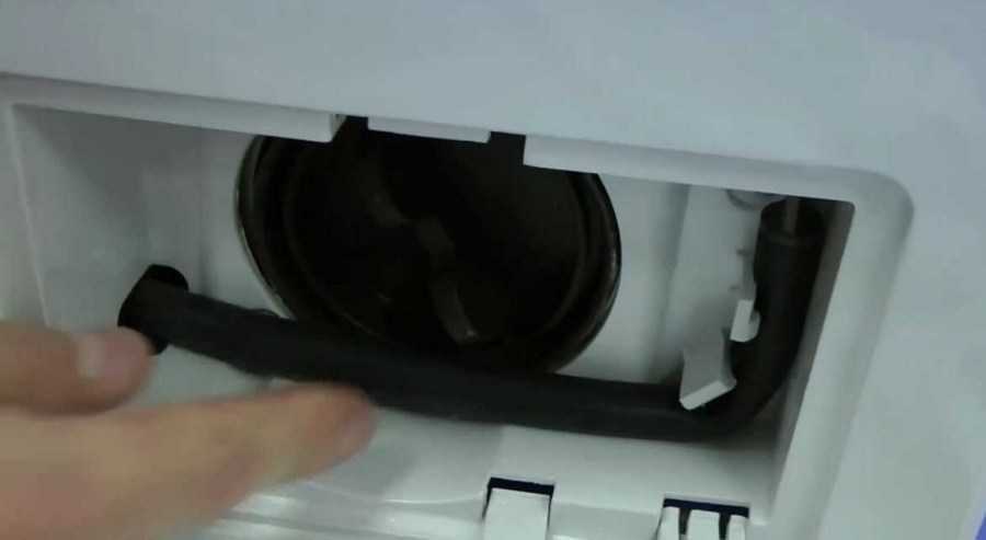 Если перезагрузка не помогла, проверяют на предмет засорения сливной фильтр. Перед этим сливается вся жидкость из системы при помощи аварийного шланга. Сливной фильтр скрывается за небольшой панелью или дверцей в нижней части машины