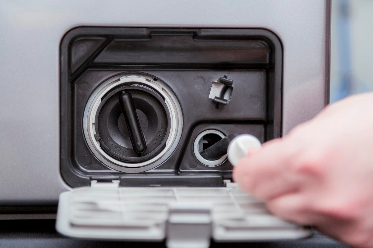 - Как уже было сказано, что ошибка OE возникает, если в течение 10 минут работы насоса, в баке осталась вода. За это отвечает специальное устройство — прессостат. И если он неисправен, то модуль управления может не определить отсутствие воды. Отметим, что этот датчик очень надёжный, и редко ломается. Достоверно диагностировать его не получится. 100% вариант — подкинуть новый, и проверить работу машины. Но датчик уровня довольно дорогое устройство, и иногда применяются две штуки. Поэтому, если подозрения падают на него, то лучше вызвать мастера по ремонту бытовой техники.