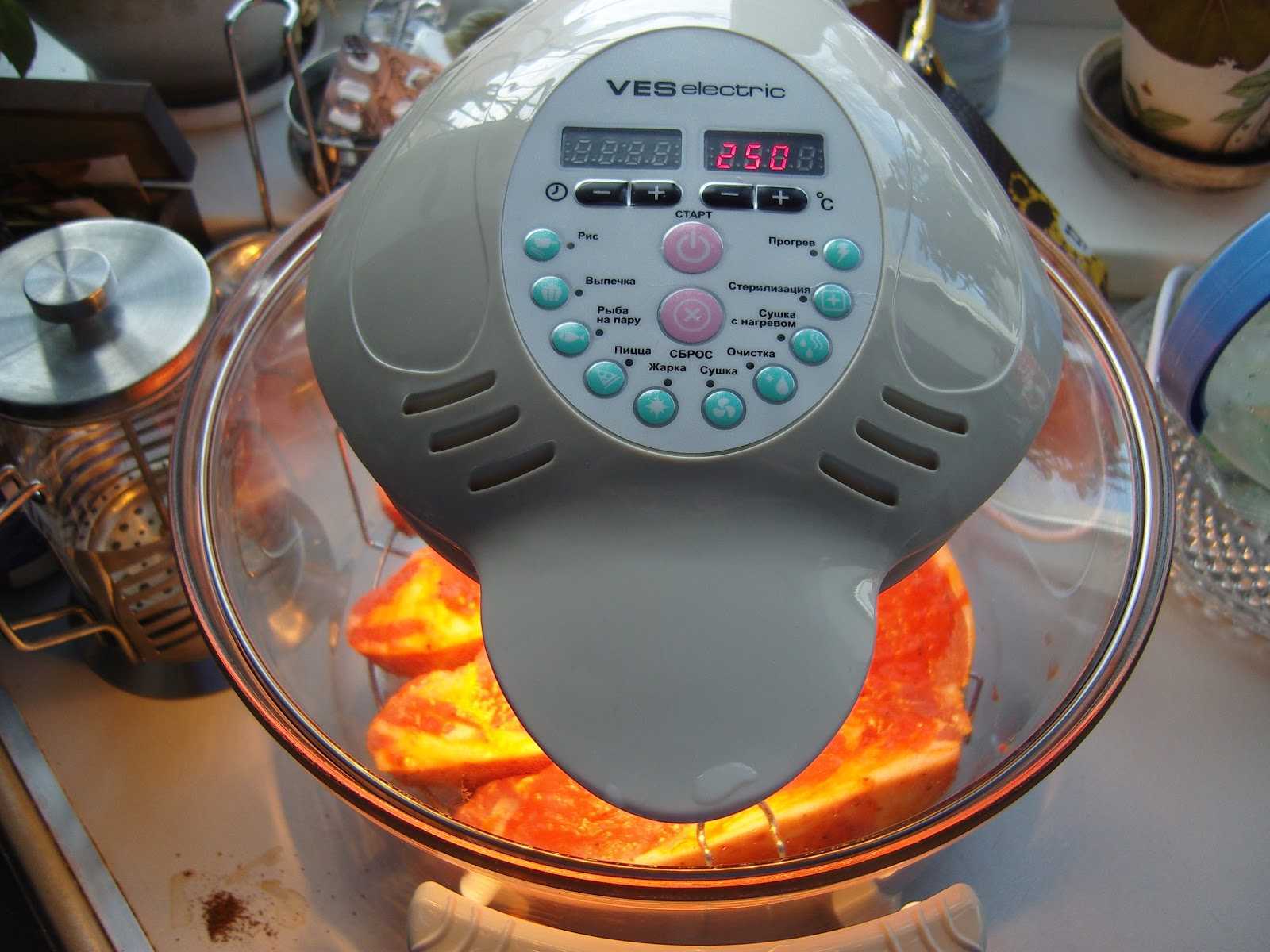 - VES (AX 725). Еще один известный производитель кухонной техники. Аэрогрили фирмы «Вэс» отличаются преимущественно электронным контролем над приготовлением пищи. Бренд специализируется на производстве галогенных моделей. Один из недостатков приборов такого типа – недолговечность. Впрочем, доступная цена и компромиссное качество повысили доверие к этой марке со стороны пользователей.