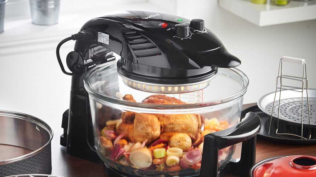 - Скорость. Благодаря быстрому нагреву галогеновые аэрогрили могут приготовить блюдо быстрее, чем конкуренты.