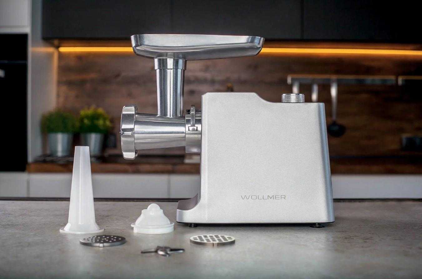 Первое на что обращаем внимание – это комплектация мясорубки. И здесь нас ждет приятный сюрприз, поскольку Wollmer M905 – это линейка электрических мясорубок, которая состоит из трех модификаций — basic, profi и profi plus