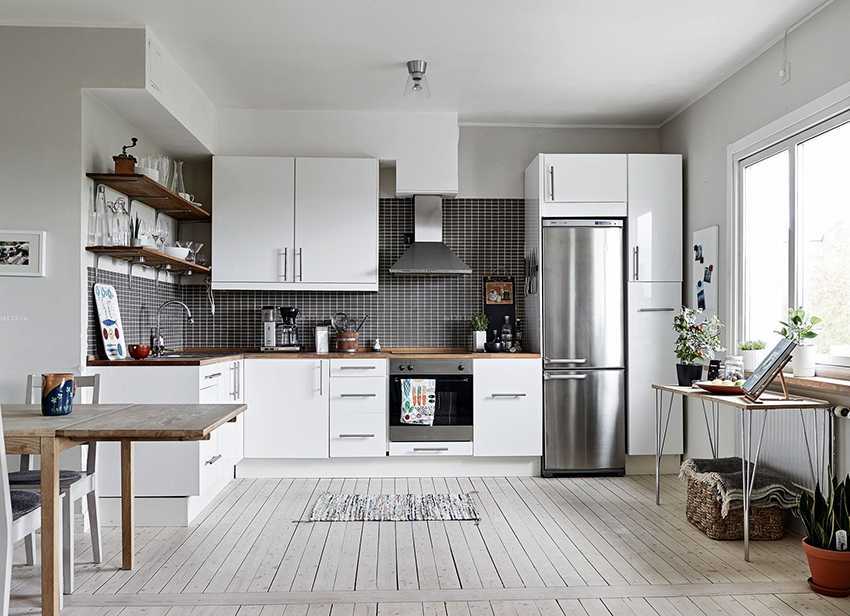 - стандартные белые холодильники можно выбирать для классических светлых и скандинавских кухонь;