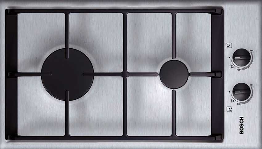 Такая поверхность имеет дизайн «домино» и довольно часто приобретается в качестве дополнения к главной плите на 4 конфорки. Что касается горелок, то их суммарная мощность составляет 4 кВт. Одна конфорка отличается экономичностью, а вторая имеет более высокую мощность. Из дополнительных функций этой газовой варочной панели Bosch можно отметить электрический поджиг и газ-контроль.