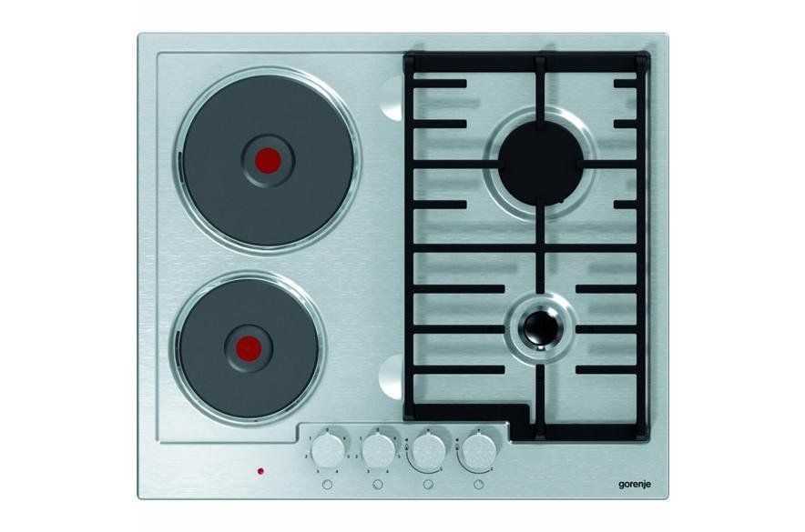 Комбинированная поверхность с четырьмя горелочными устройствами. Первая пара функционирует от природного газа, вторая – от электричества. Газовые горелочные устройства оснащены опцией газ-контроль, электрические – электрическим розжигом. Комбинированная панель изготовлена из стали высочайшего класса с покрытием эмалью, а ее разнотопливные конфорки делают приготовление пищи простым и комфортным в тех домах, где существуют проблемы с подачей газа или есть перебои с электричеством. Опция автоматического розжига избавляет от необходимости применять спички или зажигалки. Легко чистится, не требуя специальных моющих средств. Средняя цена: от 15000 рублей.