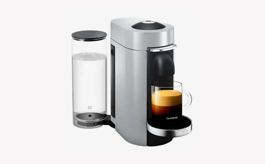 Плюсы: тем, кто предпочитает кофе большого объема, идеальным приобретением будет капсульная кофемашина De’Longhi Nespresso ENV 155. В ассортименте линейки Vertuo есть напитки большого (230 мл) и очень большого объема (414 мл). Нанесенный на капсулы штрих, считываемый кофеваркой, позволяет автоматически запустить оптимальную программу по количеству воды, температуре и времени экстракции.