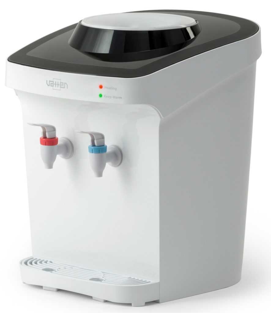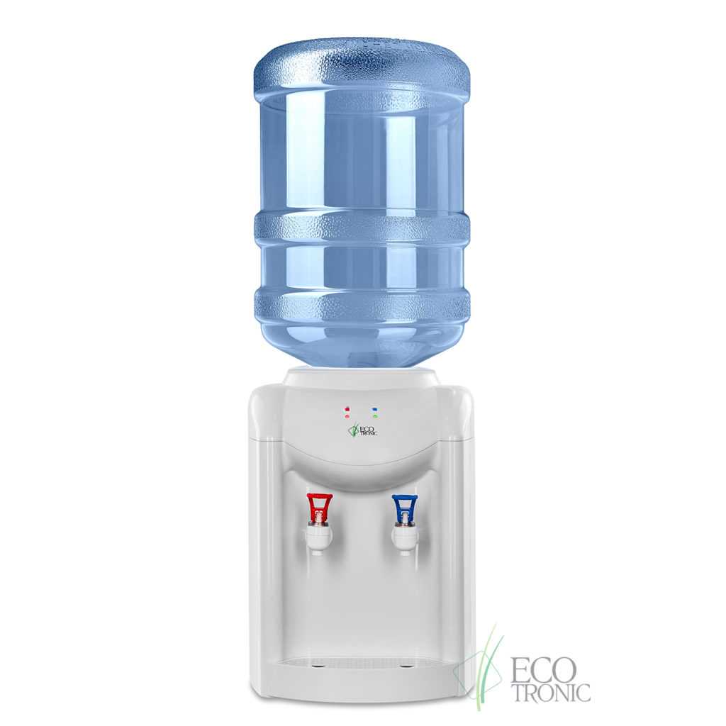 Настольный. По функционалу и характеристикам не уступает напольному кулеру, обладает небольшой высотой и не имеет дополнительных опций. Конструкция обладает резервуаром объемом 18-30 литров. Благодаря небольшим размерам и массе, настольный вариант компактный и мобильный. Его стоимость ниже, чем у напольных моделей. Установить такой аппарат можно только на прочную поверхность – устройство обладает значительным весом.