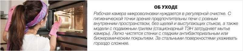 Плюсы проверенных производителей микроволновок в том, что они гарантируют качество внутреннего покрытия камеры. Сегодня часто выпускаются модели с использованием инновационных материалов, но есть несколько основных проверенных покрытий:
