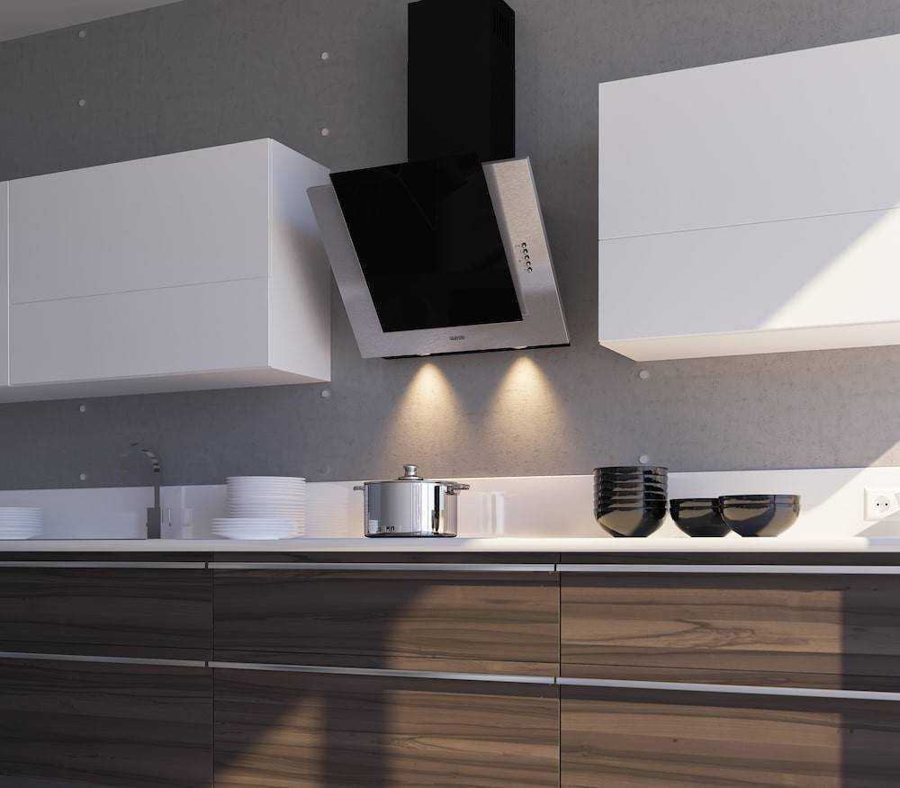 Перед тем, как приступить к расчету расстояния до вытяжки, стоит выбрать тип воздухозаборника. Они могут быть параллельными варочной панели (горизонтальными) или наклонными (наклонными). Каковы различия в их работе? Горизонтально под углом 90 градусов, и весь пар, запах, небольшие брызги смазки всасываются намного легче. Вертикаль выглядит привлекательно, но иногда для повышения производительности необходимо включать больше мощности. Однако использование этого типа оборудования намного комфортнее – вы можете избежать ударов головой о тело.
