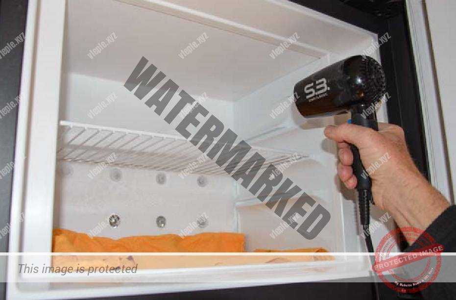 - Для процедуры таяния льда дверцу электроприбора оставьте открытой.